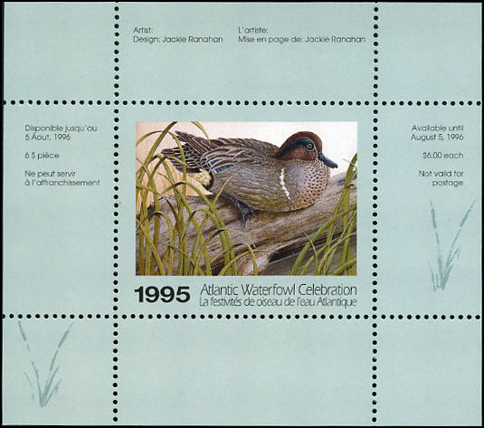 1995 Green-winged Teal by Julie Schapman. Single mini sheet with matching folder