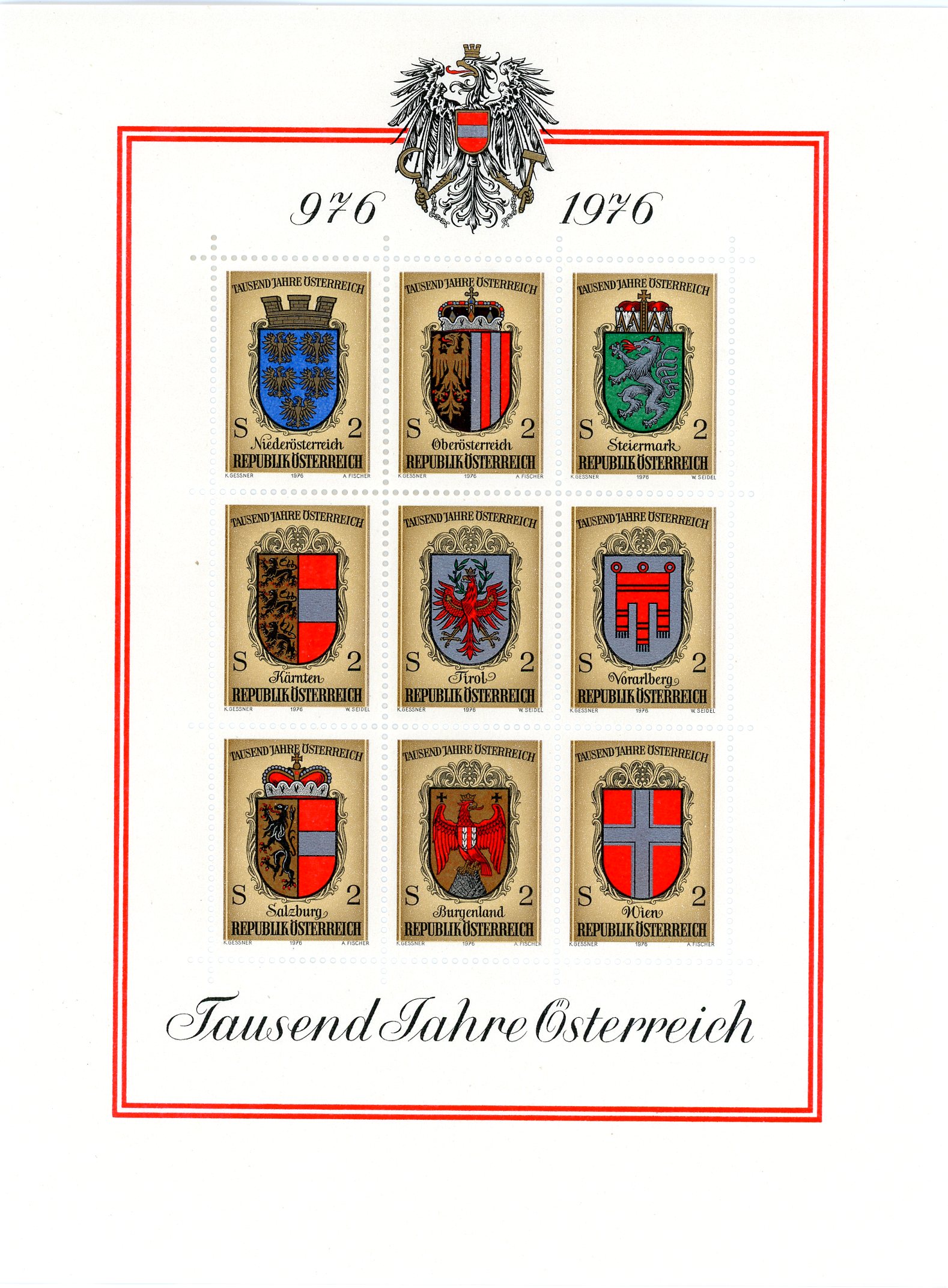 AUSTRIA, SCOTT # 1042a-1042i (8) SOUVENIR SHEET, 1976 COATS OF ARMS ISSUE MNH