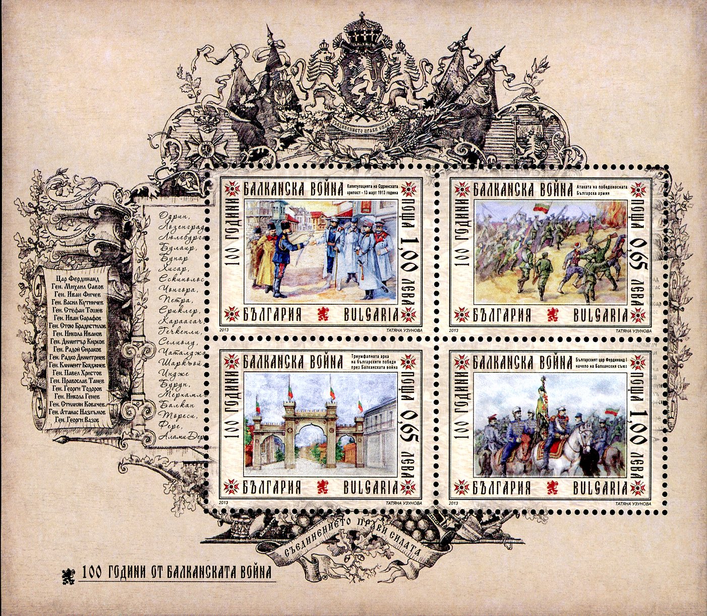 Bulgaria Stamp #Sc4634 (2013) – mini-Sheet of 4 Balkan Wars, Cent.
