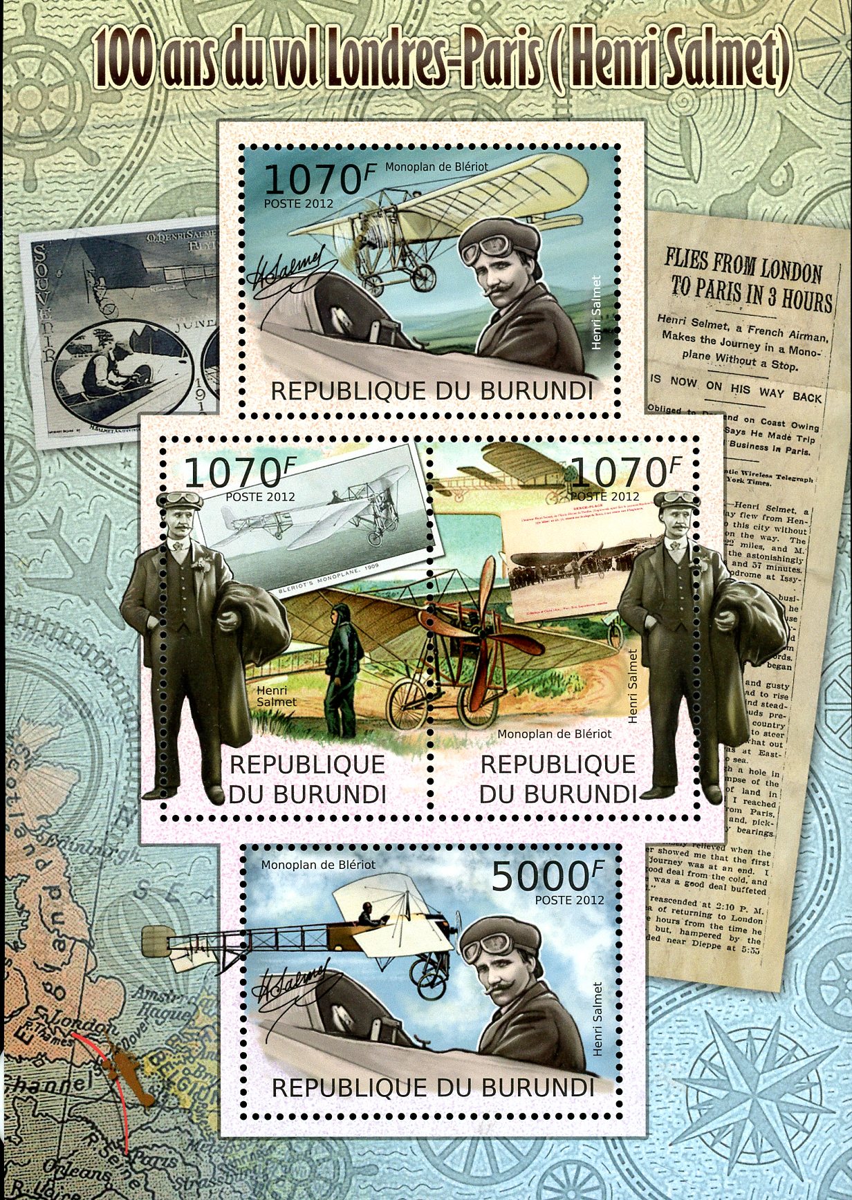Burundi Stamp Sc#1075 (2012) – S/Sheet of 4 – Century of London to Paris Flight of Henri Salmet