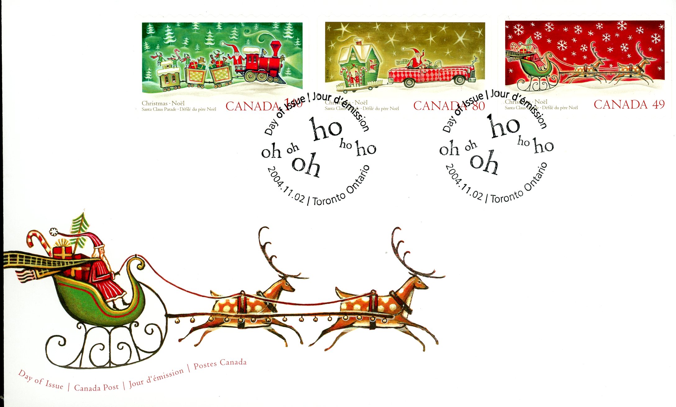 Canada FDC #2069-71 – Christmas-Toronto Santa Claus Parade (2004) 1 x 49¢, 1 x 80¢, 1 x $1.40 Series of 3