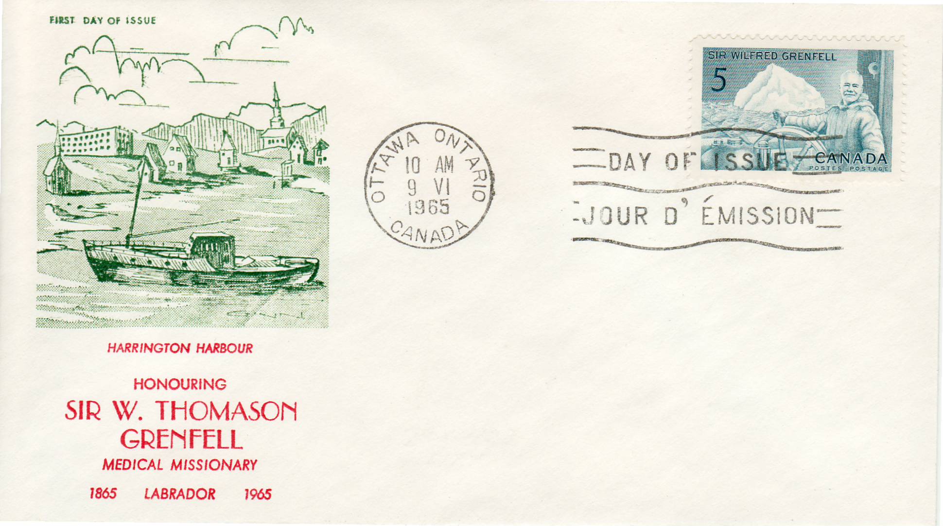 Canada FDC #438 – Sir Wilfred Grenfell and Ship (1965) 5¢