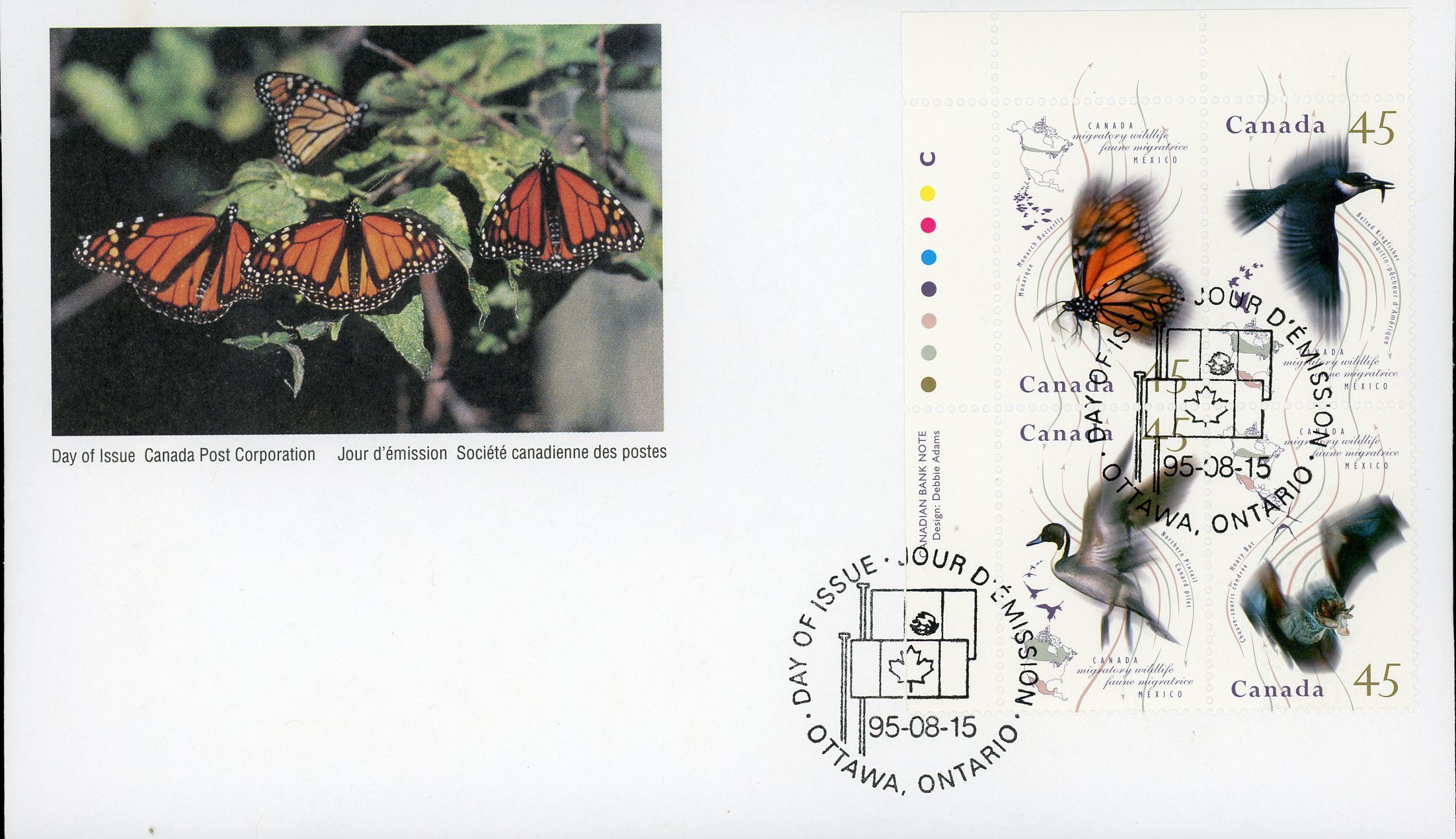 Canada FDC PB#1566a – Migratory Wildlife (1995) 4 x 45¢