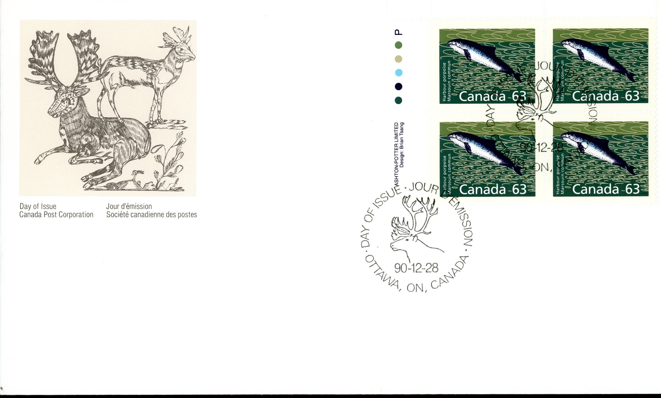 Canada FDC#1176 -PB- Harbour Porpoise (1990) 63¢
