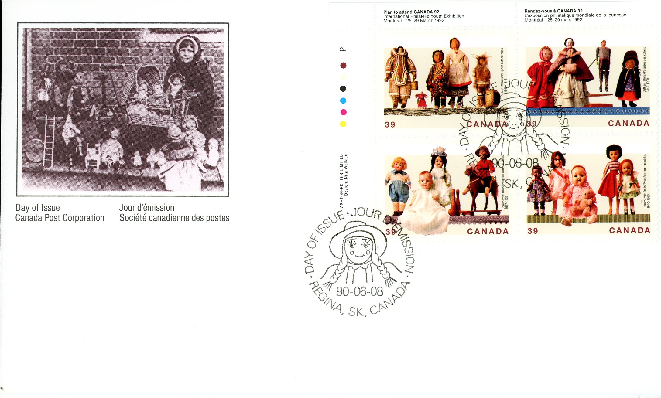 Canada FDC#1277a -PB- Cultural Treasures-Dolls (1990) 4 x 39¢ Se-tenant block (1274-1277)