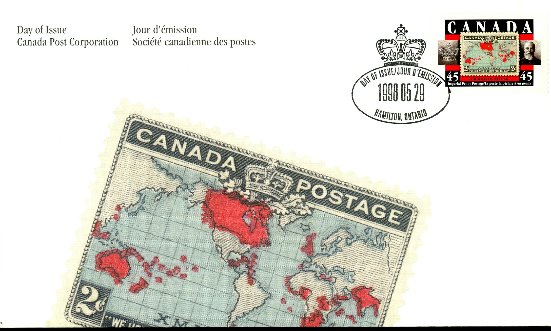 Canada FDC#1722 – St. Edward’s Crown/2¢ Imperial Penny Postage/Sir William Mulock (1998) 45¢