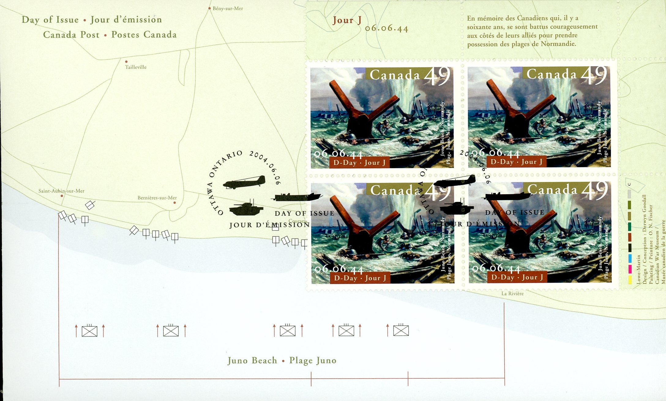 Canada FDC#2043 -PB- Juno Beach, Normandy (2004) 49¢