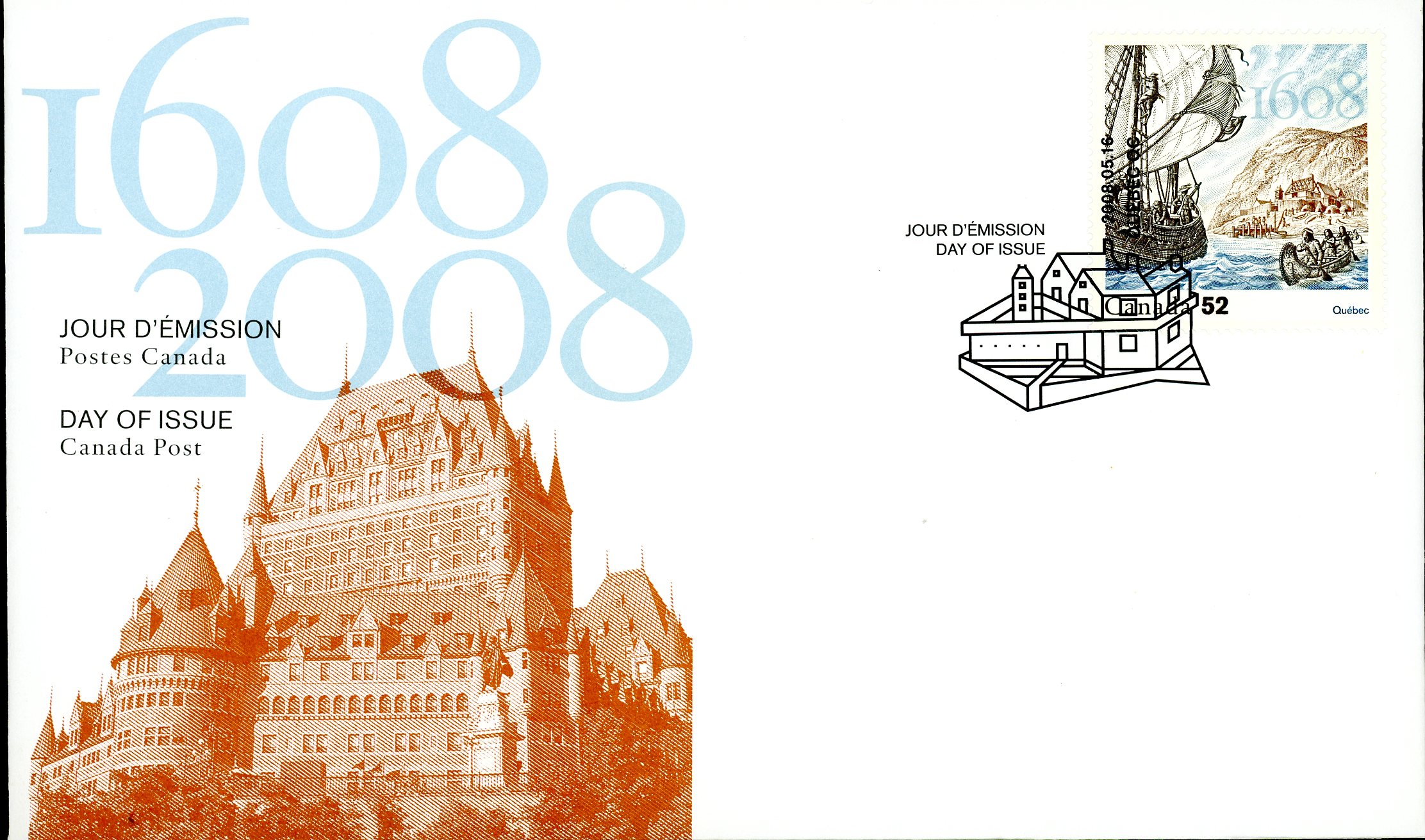 Canada FDC#2269 – Champlain’s ship, natives in canoe (2008) 52¢