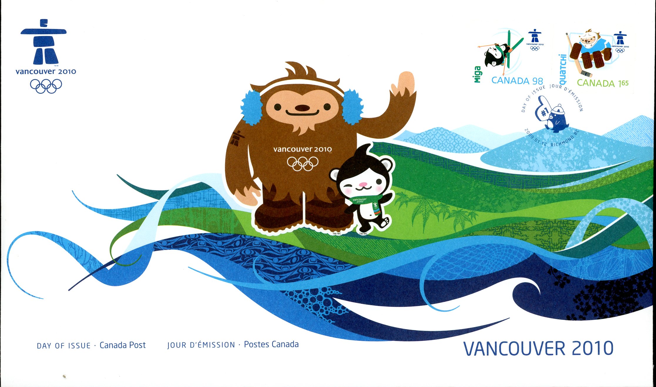 Canada FDC#2308 – Miga (2009) 98¢ & #2310 – Quatchi (2009) $1.65