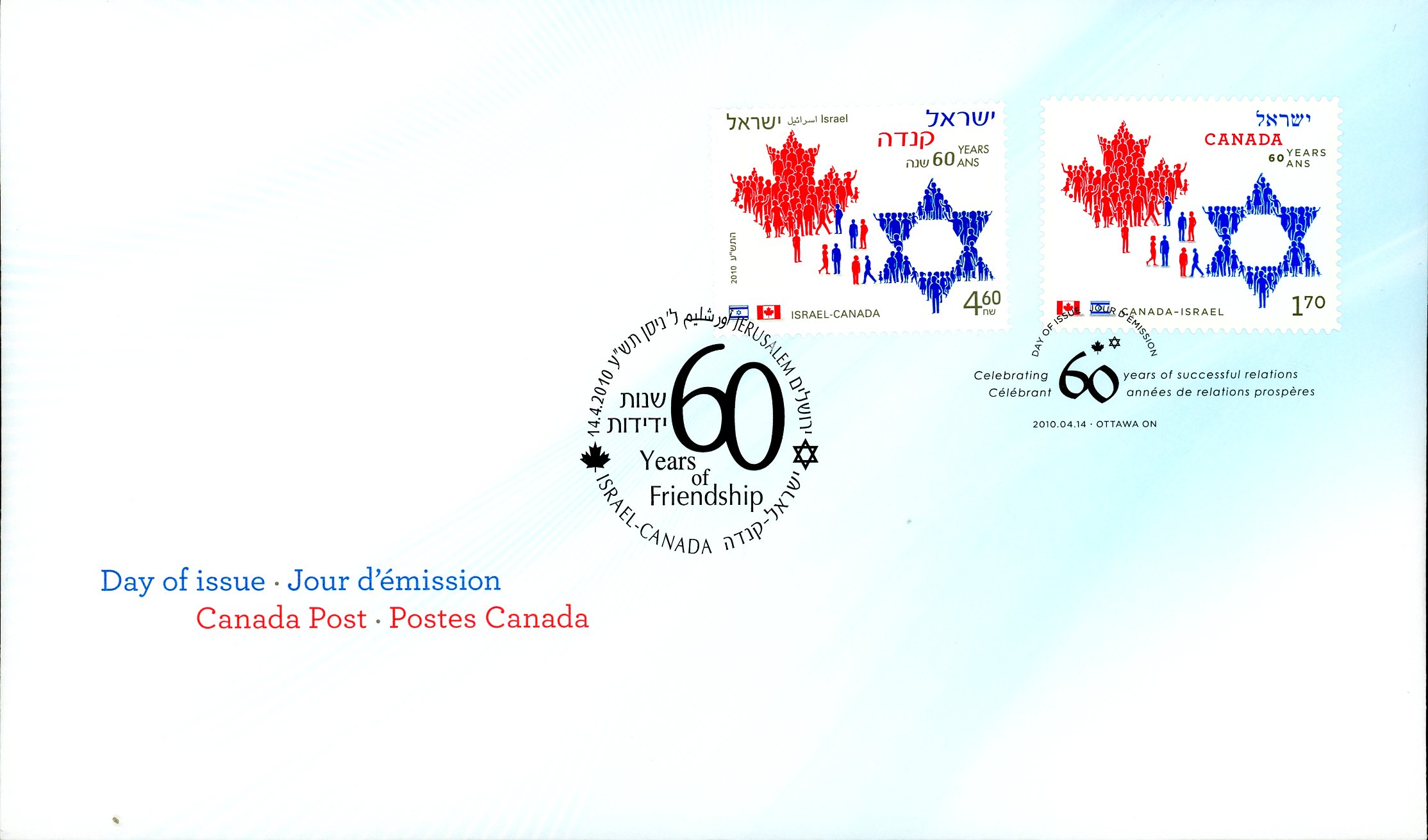 Canada FDC#2379 (W/Israel #1812) – National emblems (2010) $1.70 + 4.60