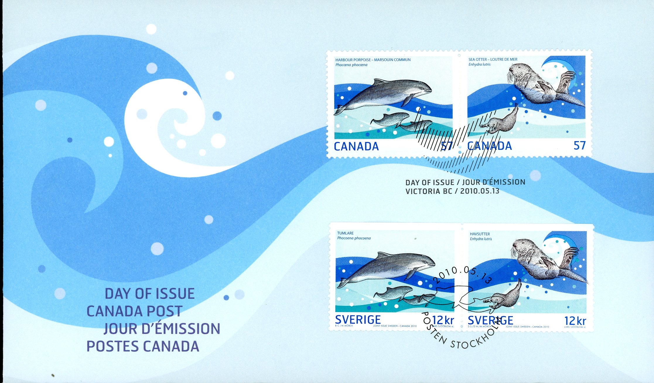 Canada FDC#2387c-d – Marine Life (2010) 2 x 57¢ 2X Set of 2 stamps (w/SWEDEN #2638)