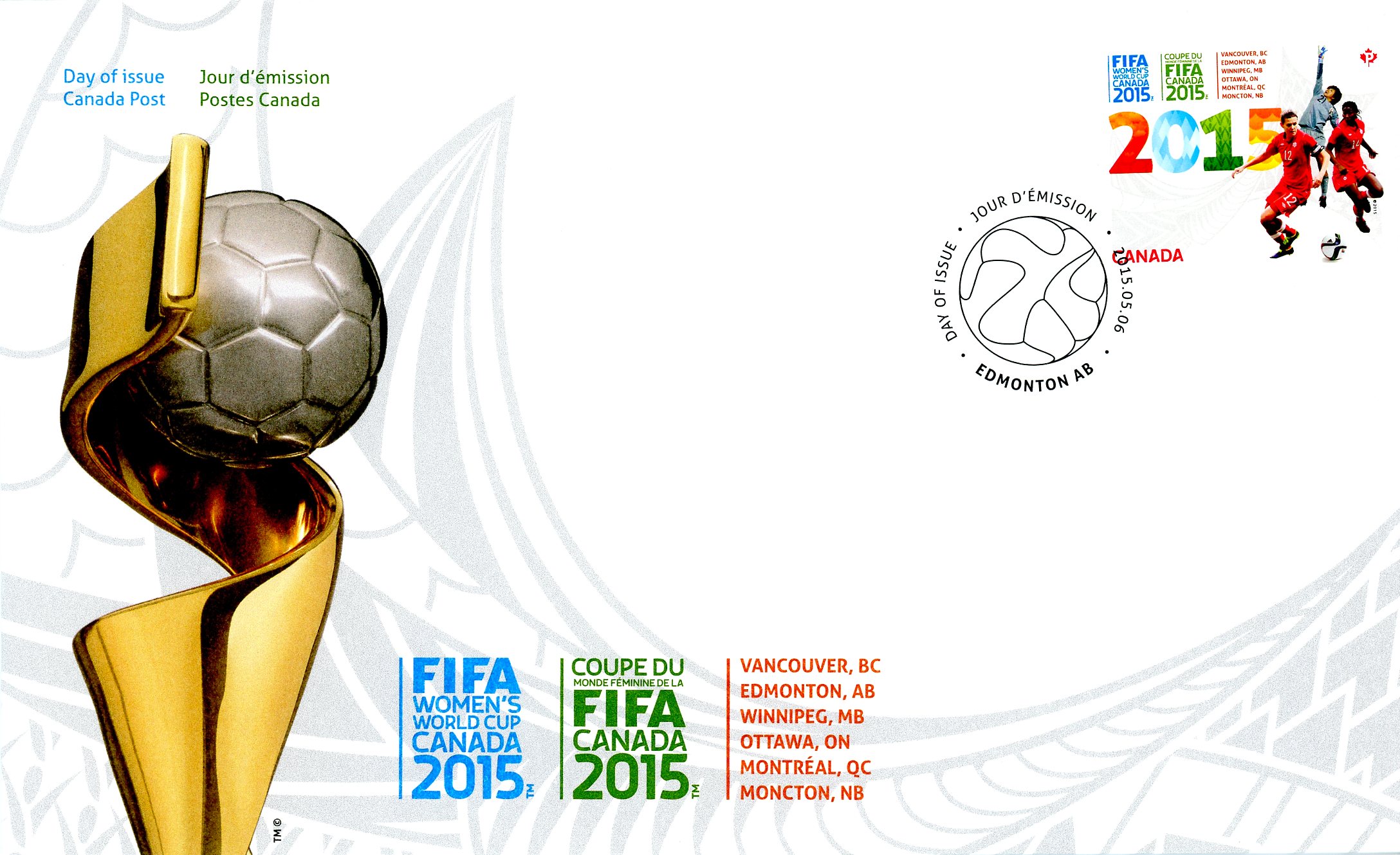 Canada FDC#2837 – FIFA Women’s World Cup Canada 2015 (2015) P (85¢)