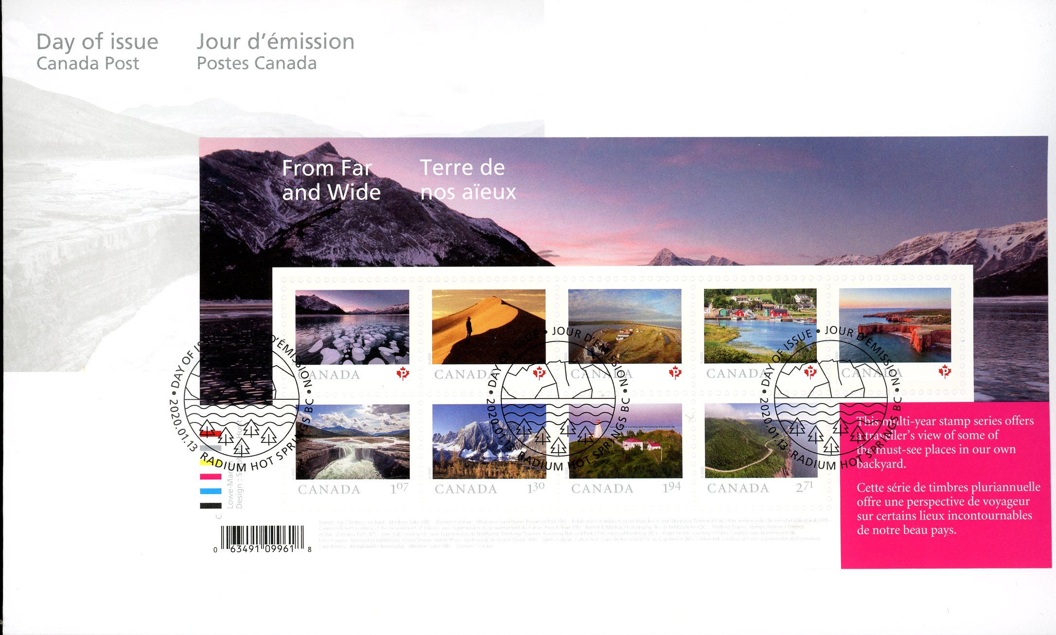 Canada FDC#3206 – From Far and Wide (3) (2020) $11.62 Souvenir sheet of 9