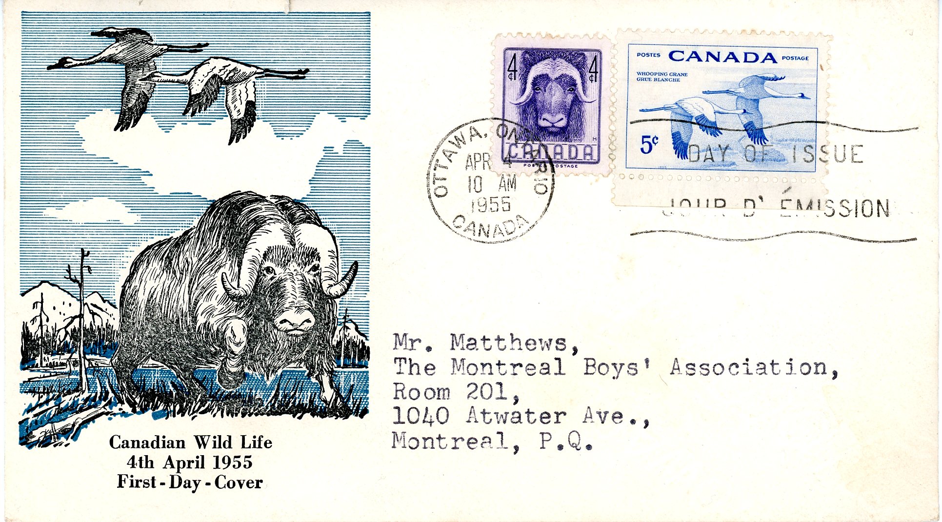 Canada FDC#352-3 – Wildlife (1955) 1 x 4¢, 1 x 5¢