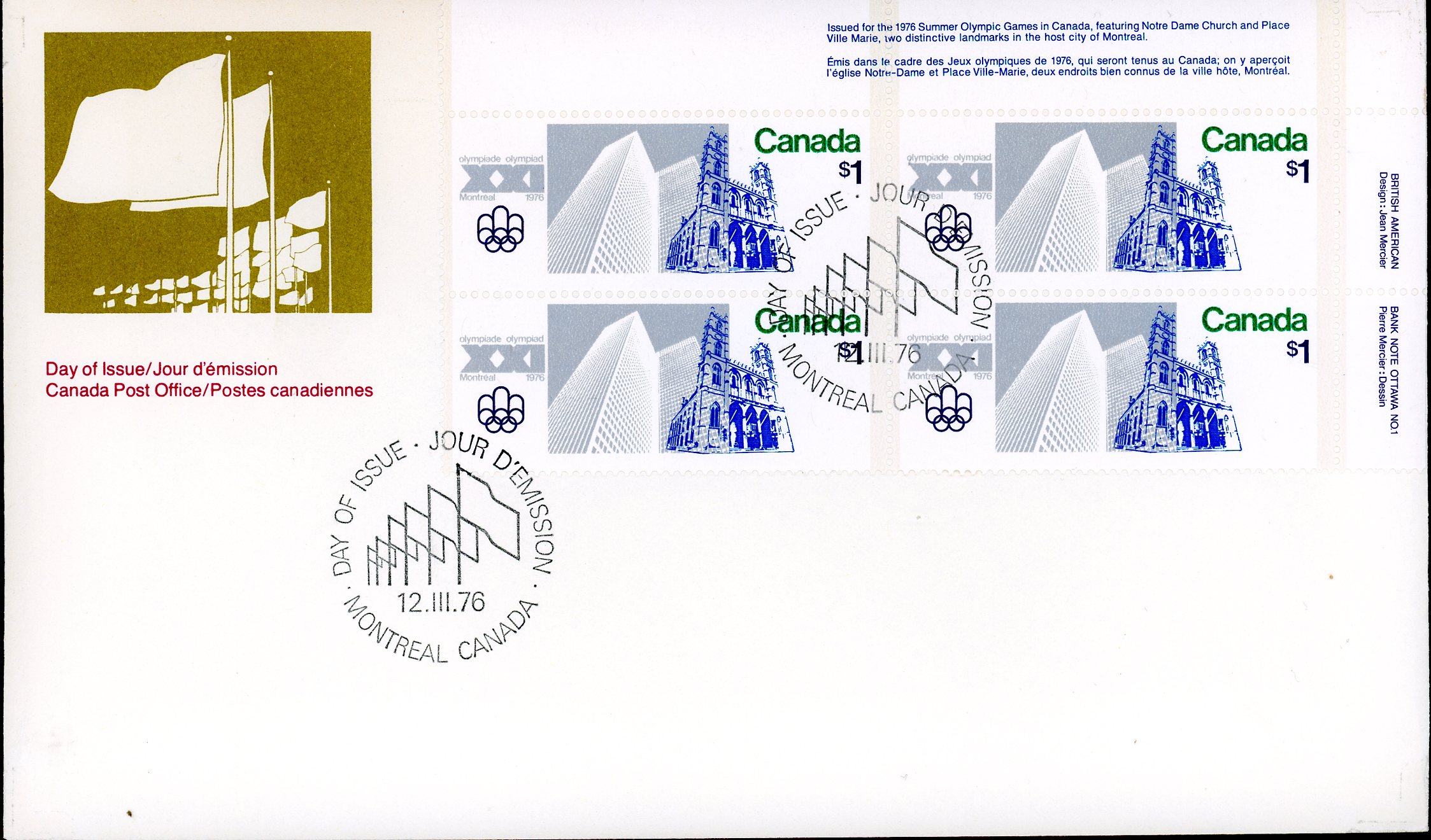 Canada FDC#687 -PLATE BLOCK- Notre-Dame and Place Ville-Marie (1976) $1