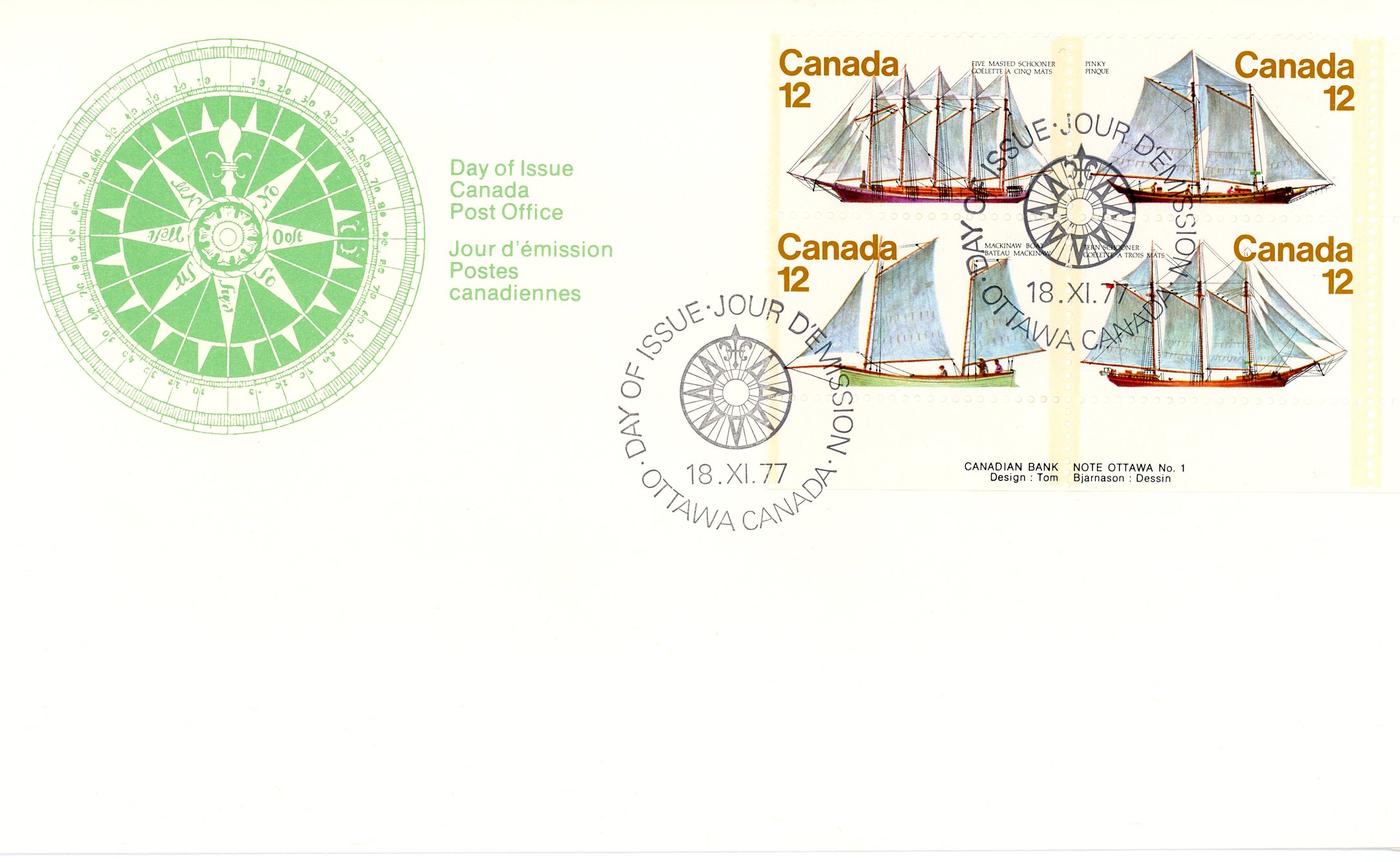 Canada FDC#747a – Sailing Vessels (1977) 4 x 12¢
