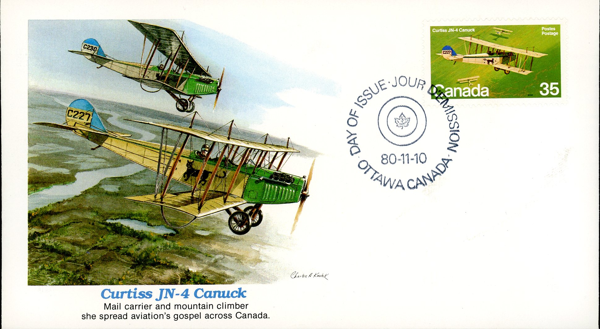 Canada FDC#875 – Curtiss JN-4 Canuck (1980) 35¢