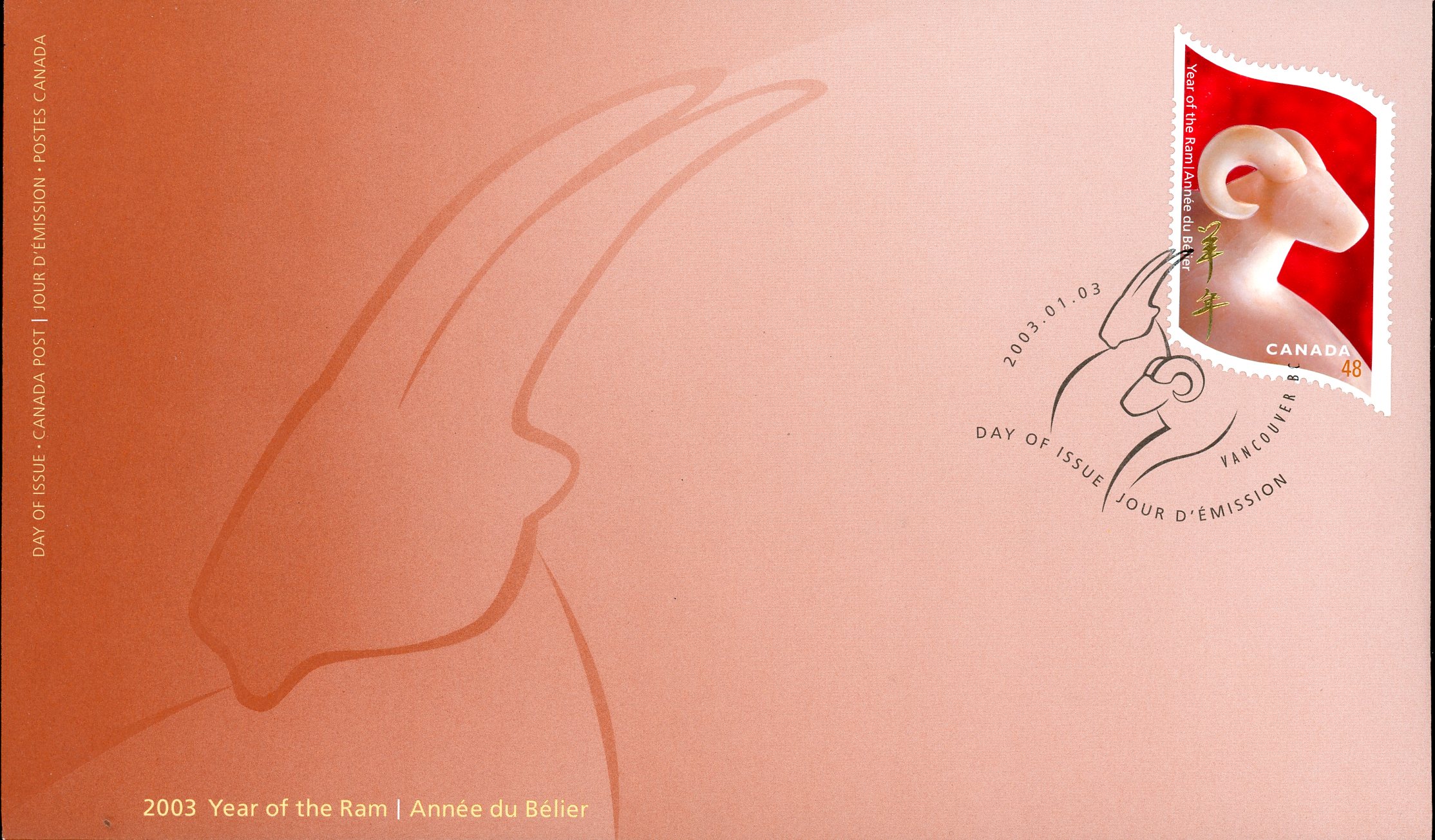 Canada OFDC#1969 – Ram and Chinese Symbol (2003) 48¢