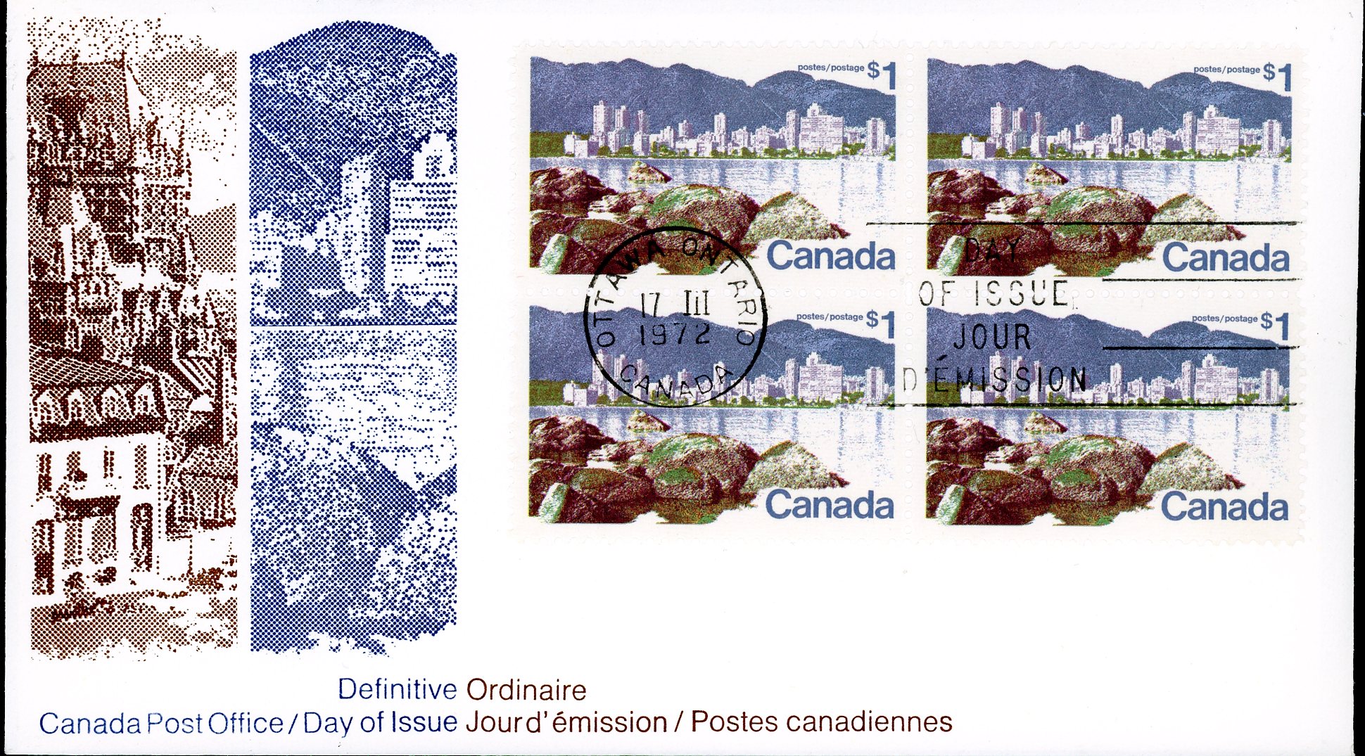 Canada OFDC#600 – BLOCK OF 4 – Vancouver (1972) $1