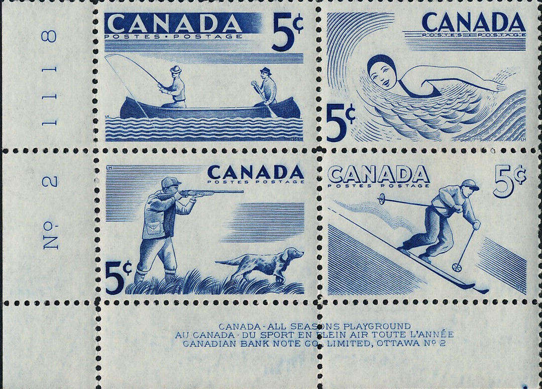 Canada Stamp #368a – Recreation Sports (1956) 4 x 5