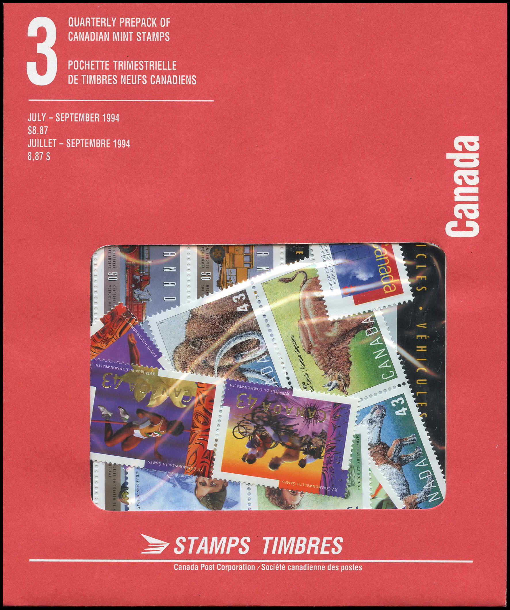 Canada Quarterly Pack # 3 of the Year 1994, including all the stamps released from July to September of 1994. All stamps are in mint condition.