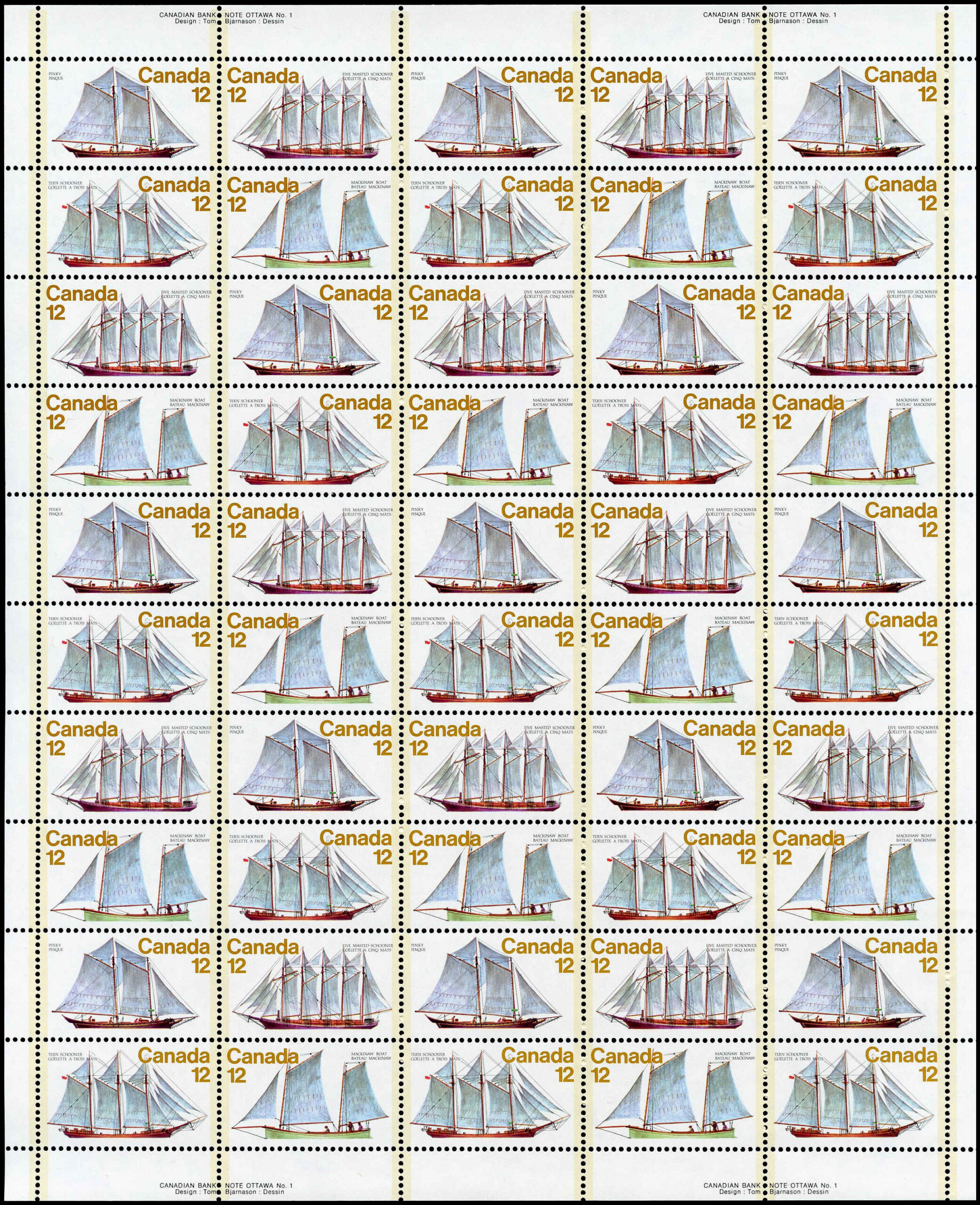 Canada SHEET #747a – Sailing Vessels (1977) 50 x 12¢
