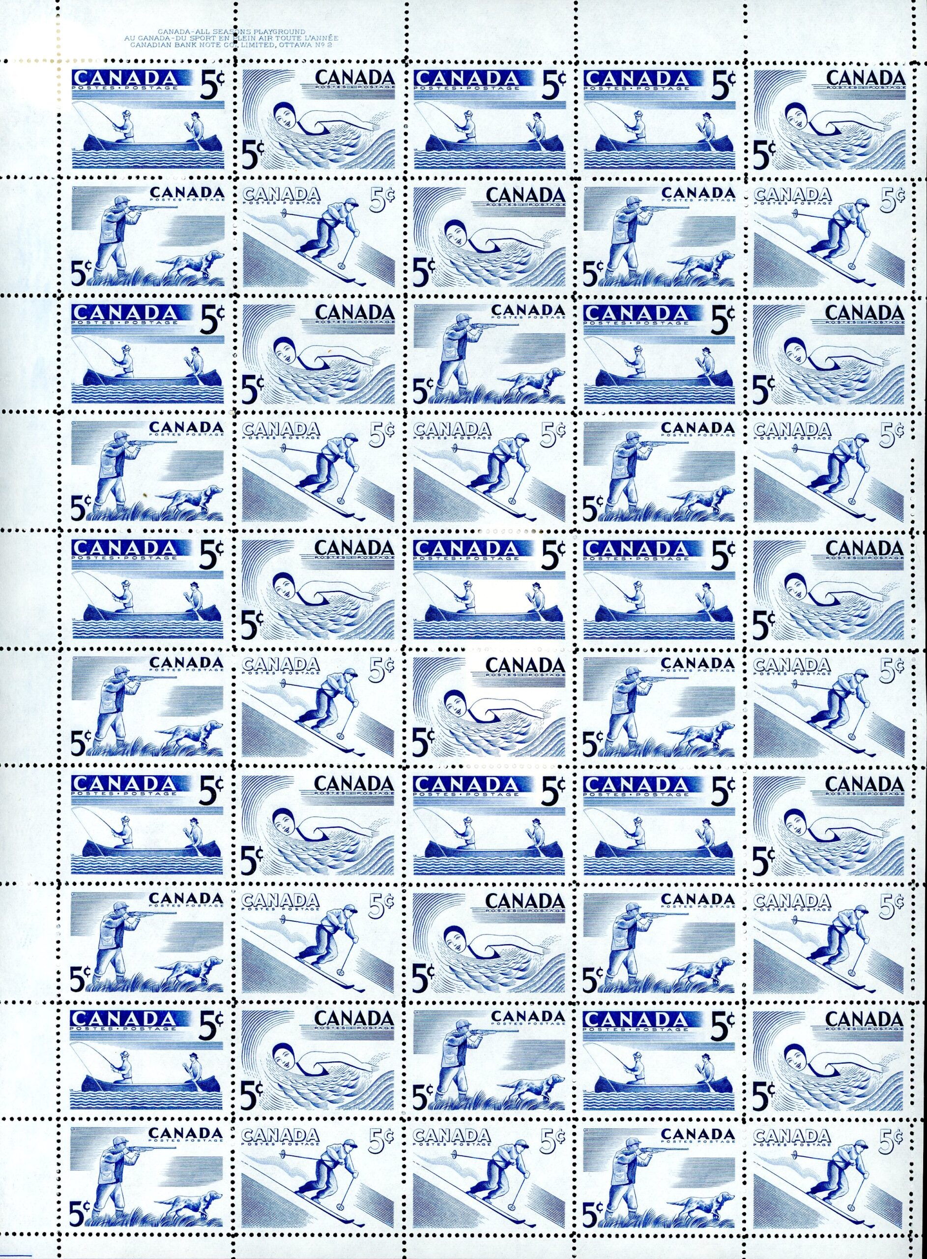 Canada SHEET#368a - Recreation Sports (1956) 4 x 5 quantity