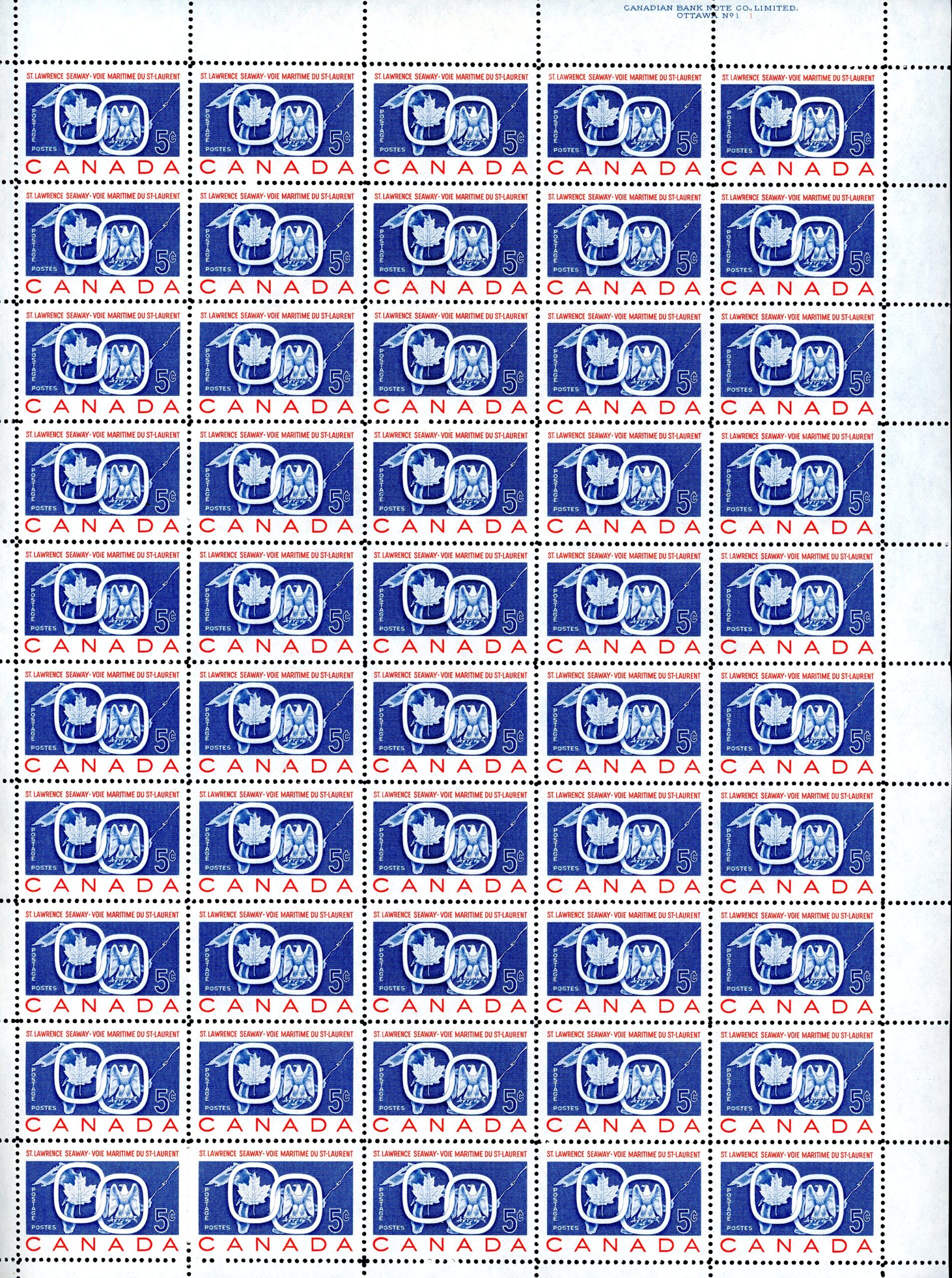 Canada SHEET#387 – Seaway and National Emblems (1959) 5¢