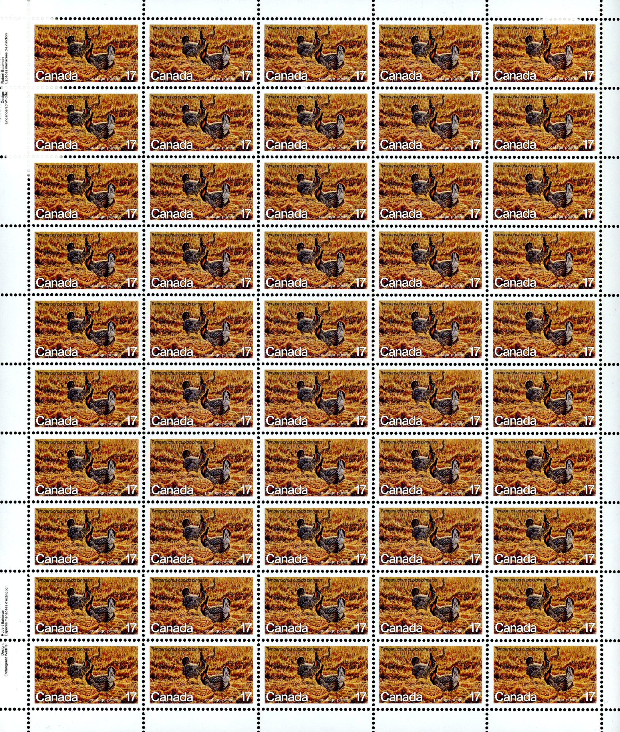 Canada SHEET#854 - Greater Prairie Chicken (1980) 17¢ quantity