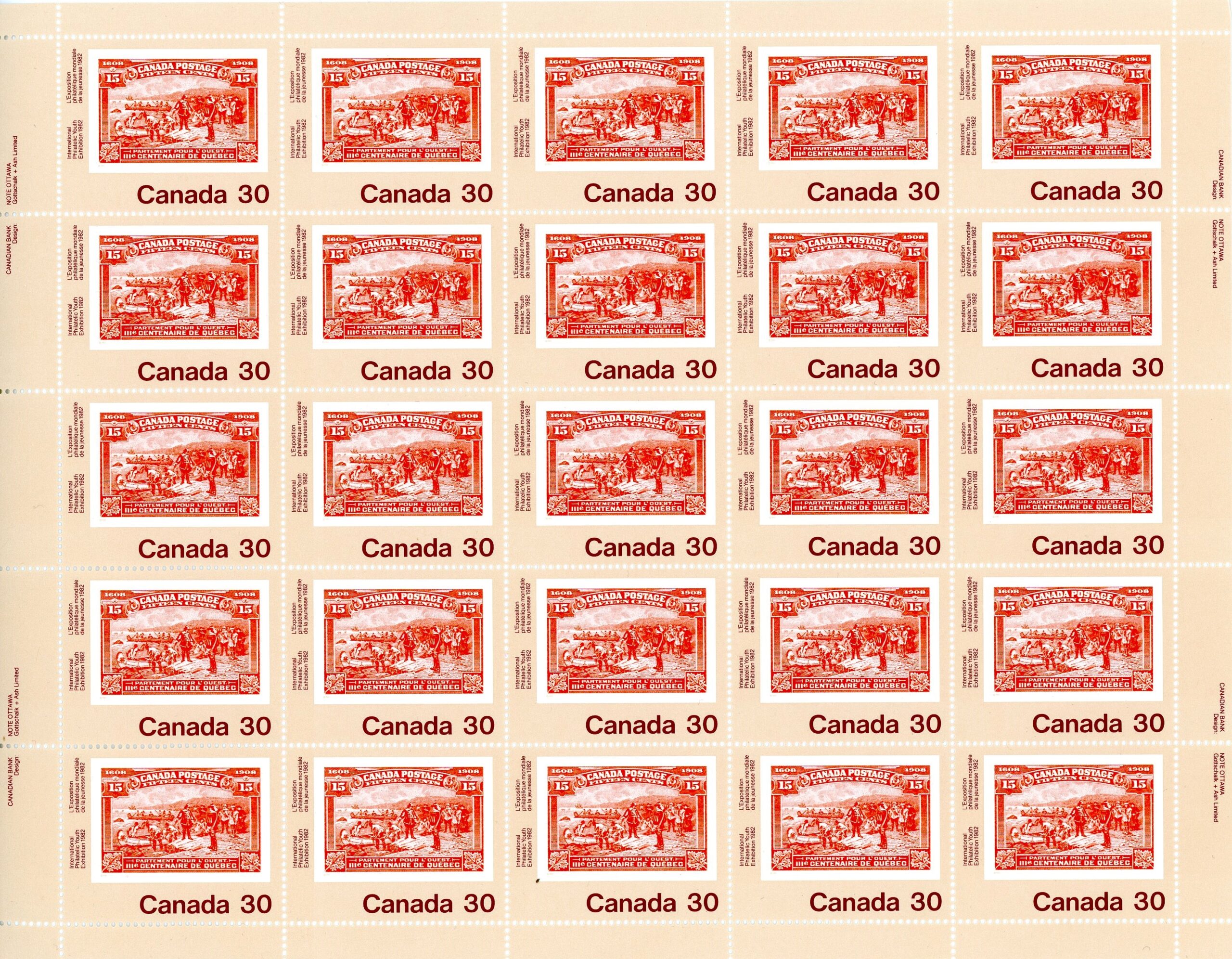Canada SHEET#910 - Champlain's Departure (No. 102) (1982) 30¢ quantity