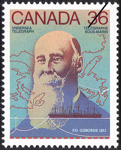 Canada Stamp #1138I – F.N. Gisborne, undersea cable (1852) (1987) 36¢