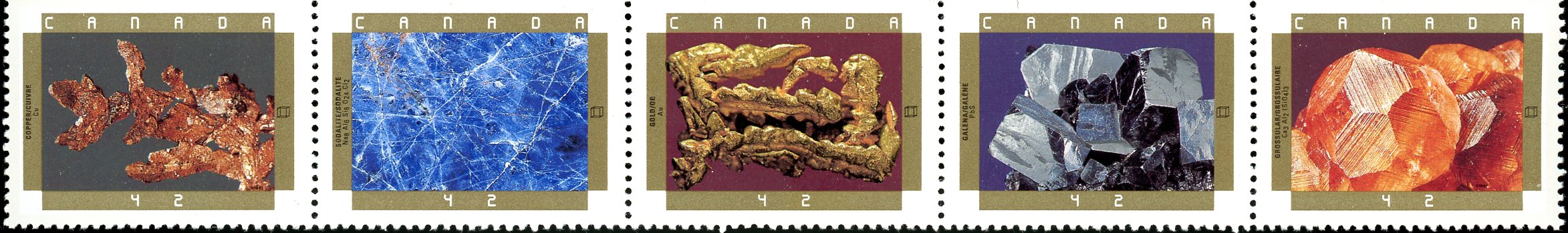 Canada Stamp #1440a – Canadian Minerals (1992) 5 x 42¢ Horizontal strip of 5 (1436-1440)