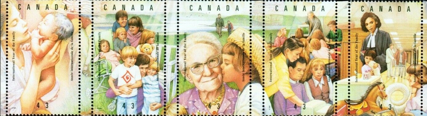 Canada Stamp #1523A-E – United Nations International Year of the Family (1994) 5 x 43¢