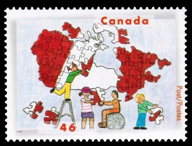 Canada Stamp #1861 (2000) – Children of Different Races Putting a Jigsaw Puzzle Map of Canada Together