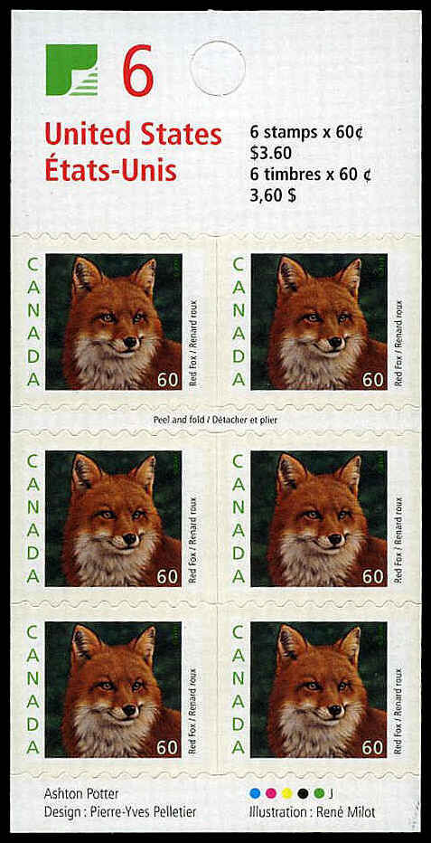 Canada Stamp #1879a – Red Fox (2000) 6 x 60¢ Booklet pane of 6 stamps (#1879iv) (BK238)