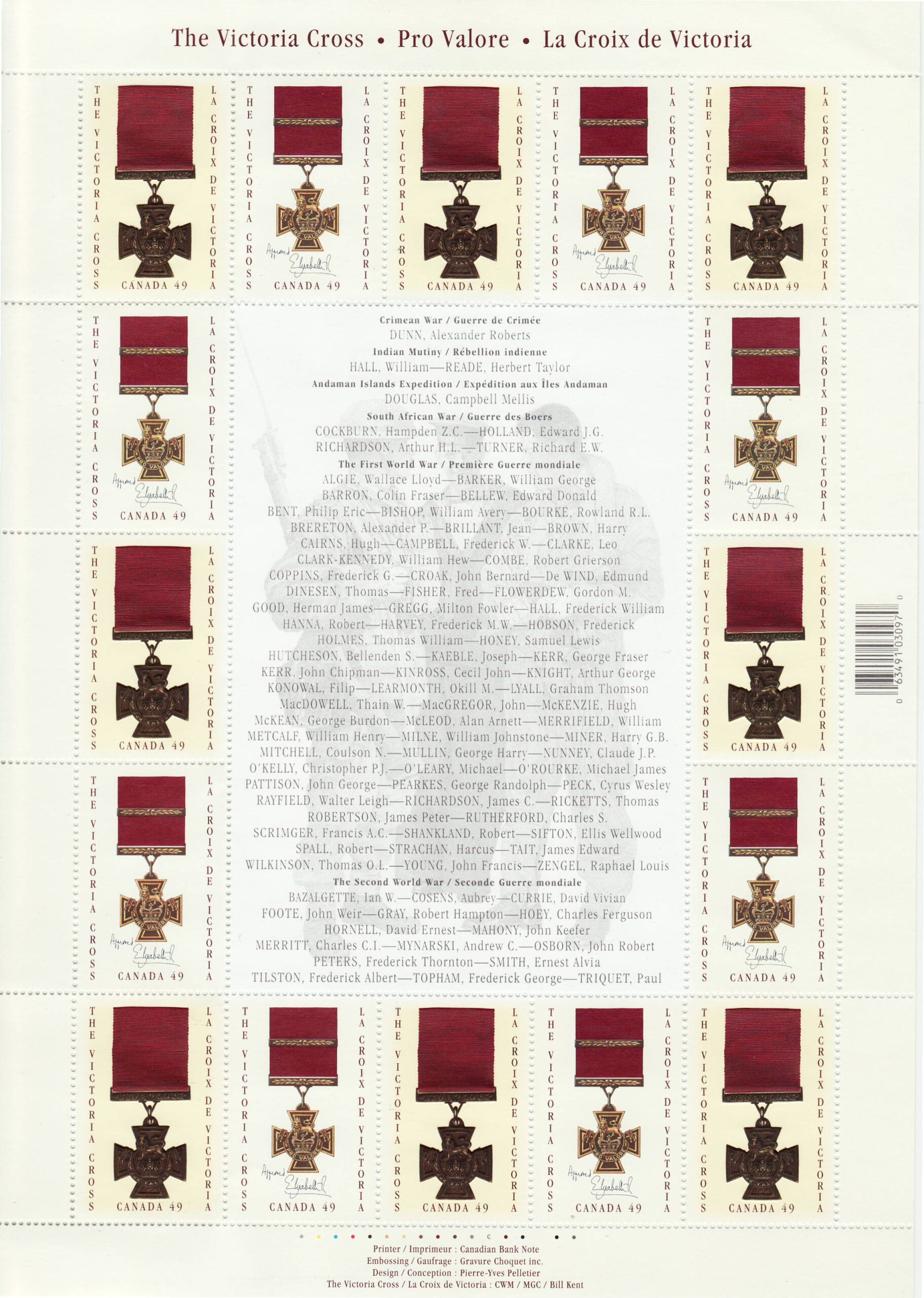FULL SHEET Canada Stamp #2066a – Victoria Cross WINNERS (2004) 49¢