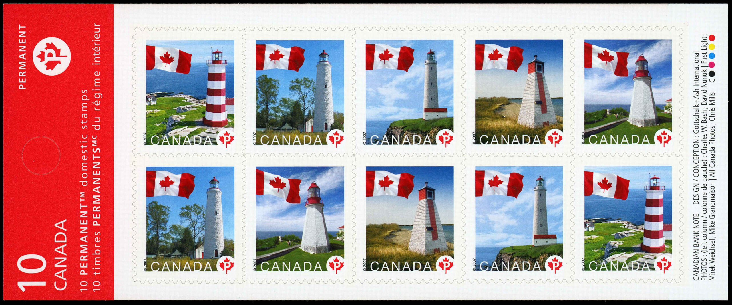 Canada Stamp #2253c – Flags and Lighthouses (2008) 10 x P (52¢)