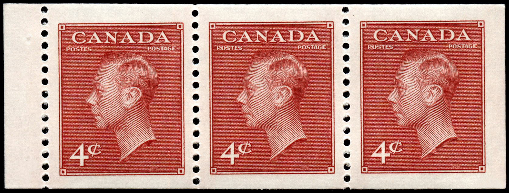 Canada Stamp #287a – King George VI (1950) 3 x 4¢ Booklet pane of 3 x 4¢ (287as), (BK43)