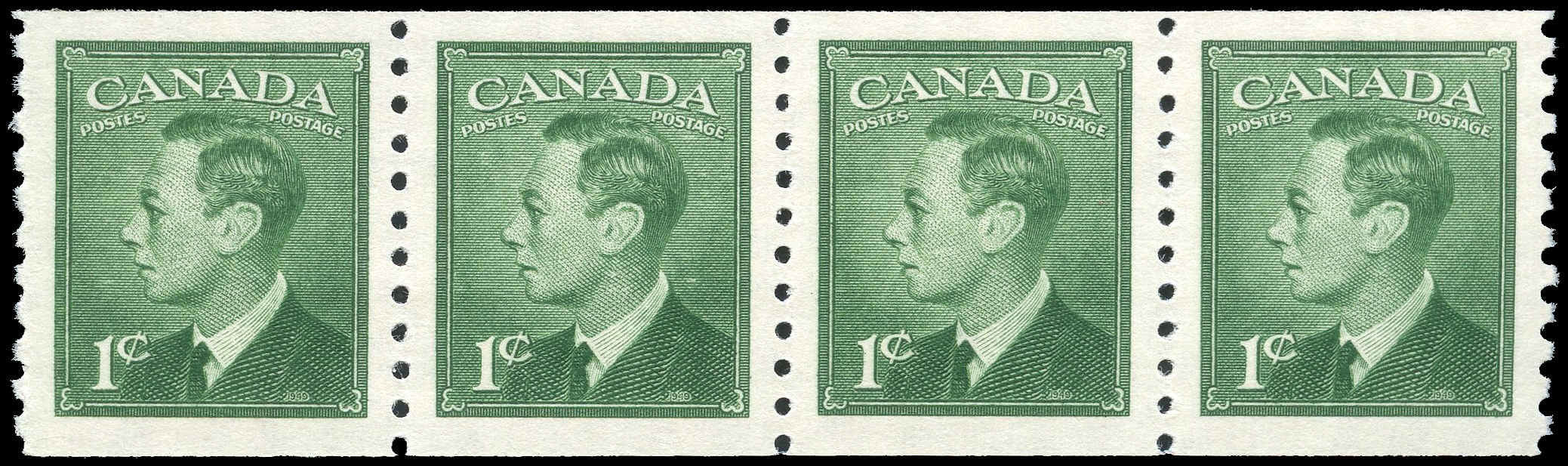 Canada Stamp #297-strip – King George VI (1950) 4 x 1¢