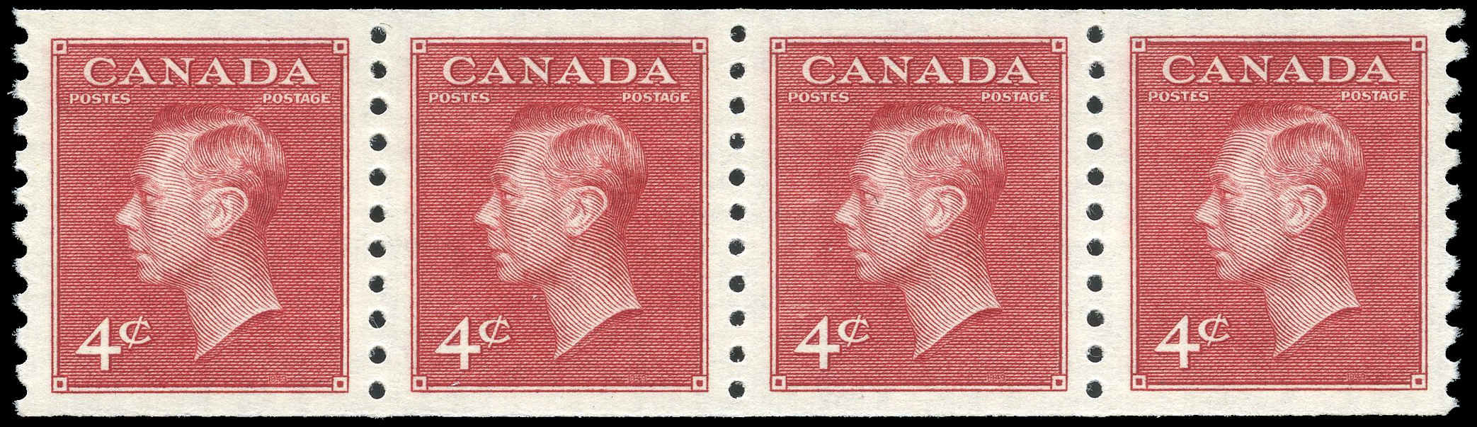 Canada Stamp #300strip – King George VI (1950) 4 x 4¢