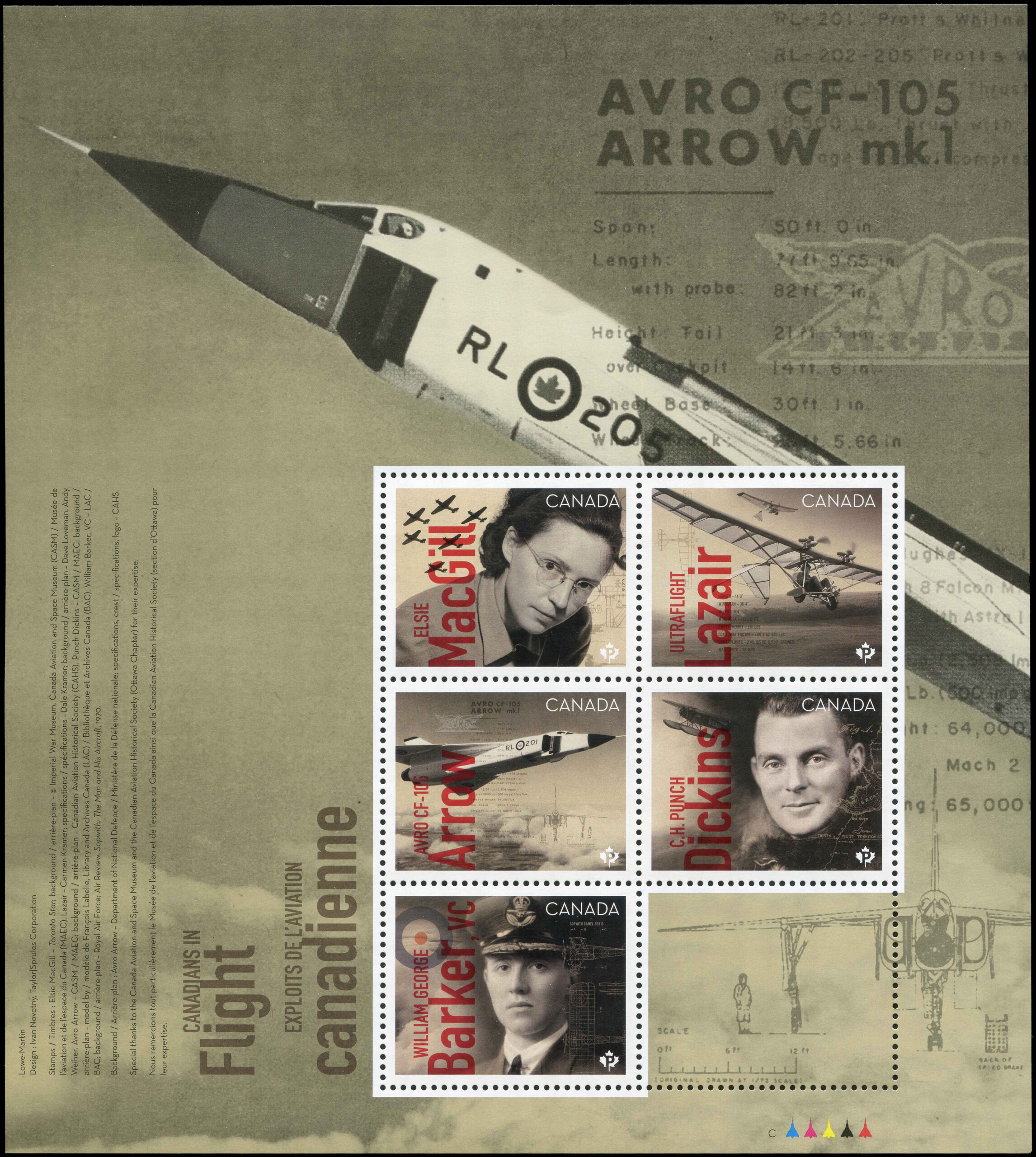 Canada Stamp #3171 – Canadians in Flight (2019) $4.50 Souvenir sheet of 5