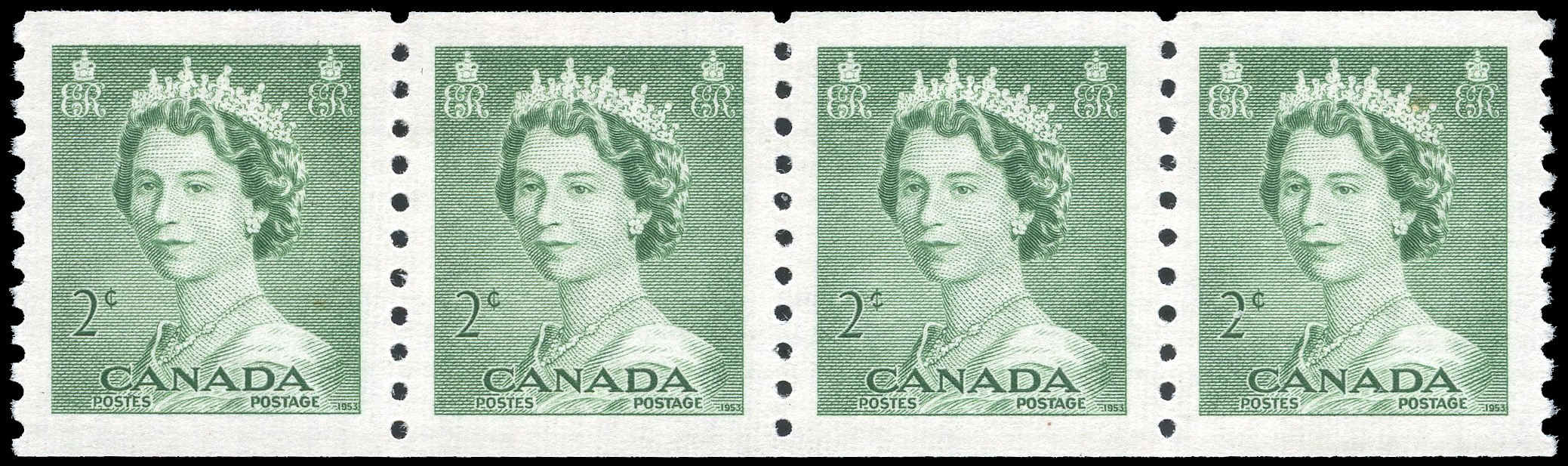 Canada Stamp #331 REPAIR Strip – Queen Elizabeth II (1953) 4 x 2¢ Strip of 4