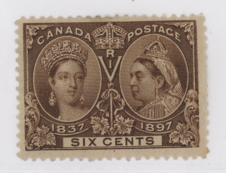 Canada Stamp #55 – Queen Victoria in 1837 and 1897 (1897) 6c — MH — F