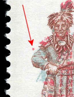 Canada Stamp #569iii – Algonkian Couple (1973) 8 ¢ “red dot above elbow” variety (pos. 28), HB