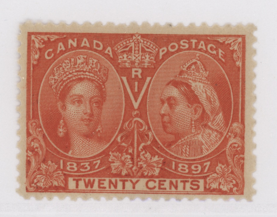 Canada Stamp #59 – Queen Victoria in 1837 and 1897 (1897) 20c — MH — F
