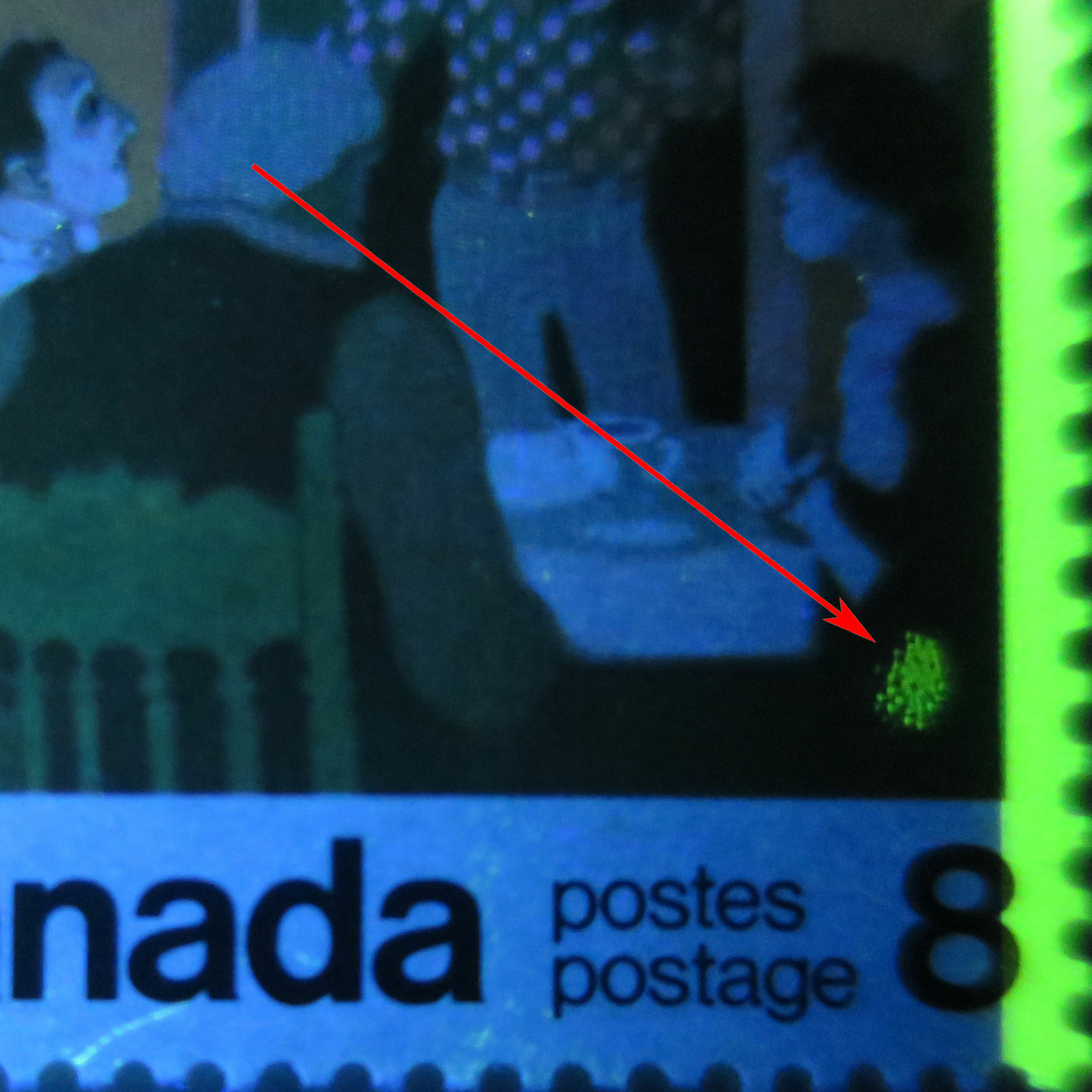 Canada Stamp #696aii – Le Survenant – se-tenant pair (695, 696i) (1976) 8¢ “flaming dress” constant tag variety (pos.31)