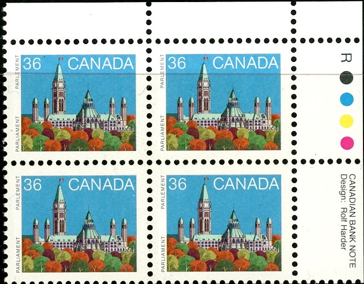 Canada Stamp #926Biii Plate Block – Parliament Buildings (1987) 36¢