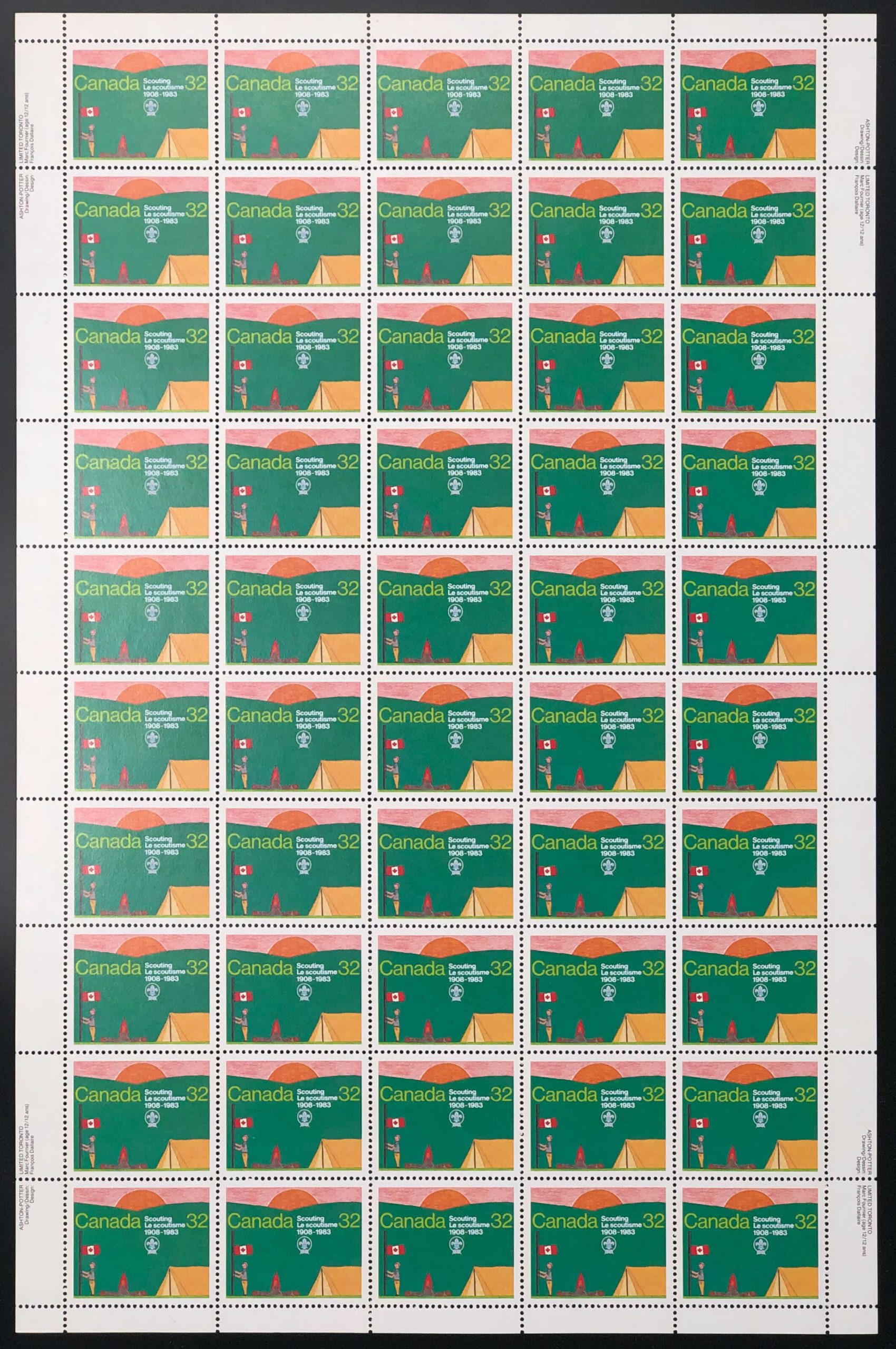 Canada Stamp #993 – Scout Encampment (1983) 32¢ No fluorescence
