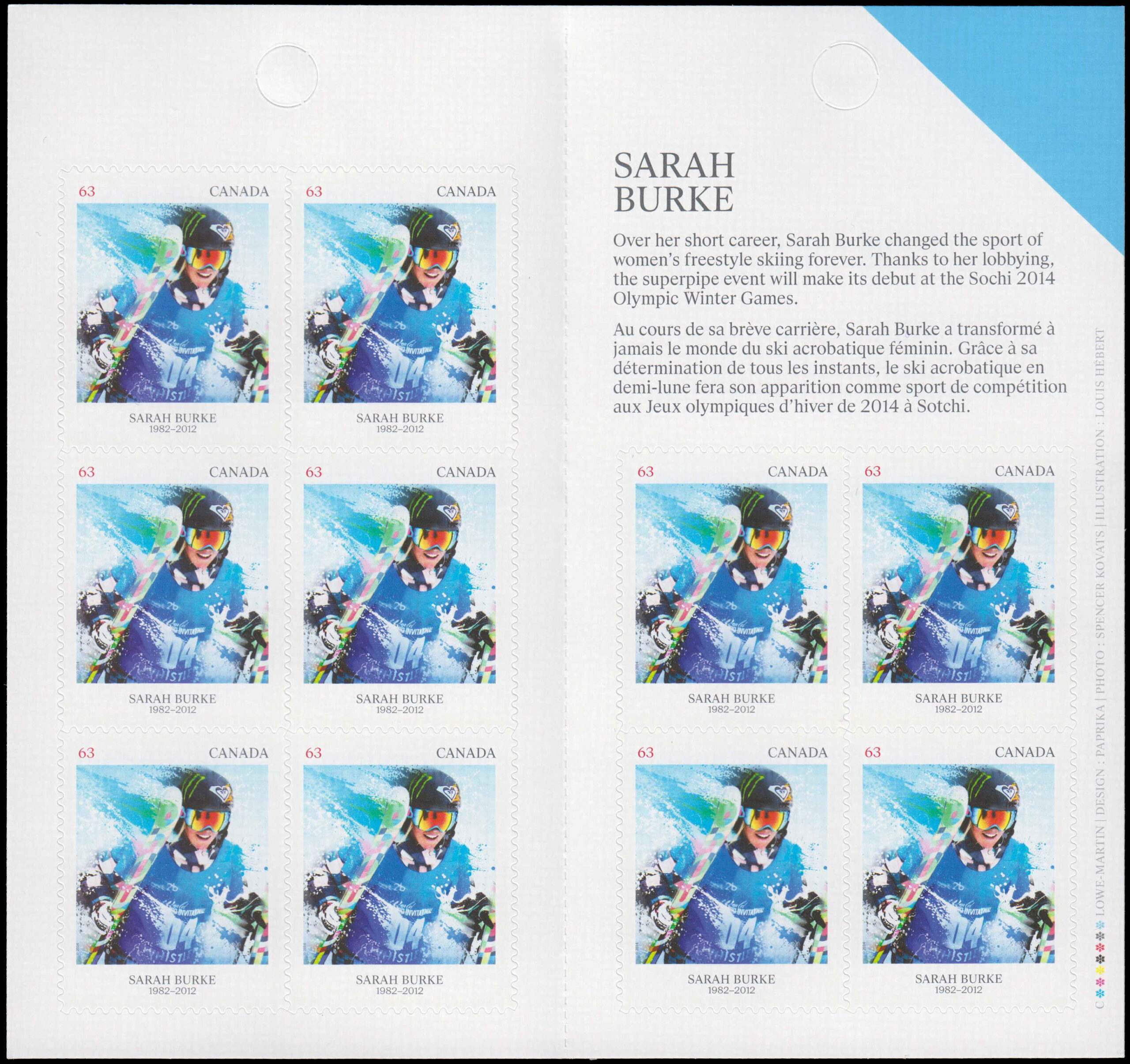 Canada Stamp Booklet – #BK574 Sarah Burke (1982-2012) (2014) 10 x 63¢