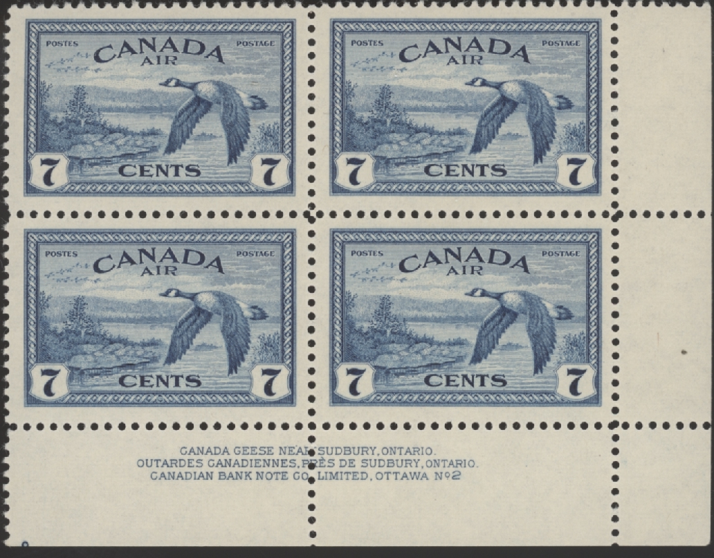 Canada Stamp – C – Air Mail #C9 – Canada geese near Sudbury, ON (1946) 7¢